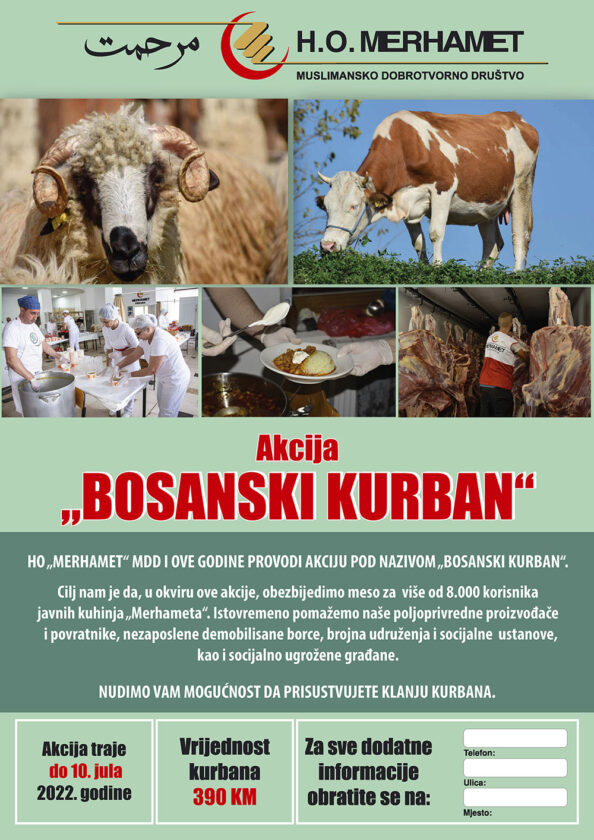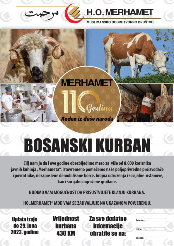 Počela je akcija „BOSANSKI KURBAN“ Muslimanskog dobrotvornog društva “Merhamet” i trajat će do 29. juna 2023. godine.