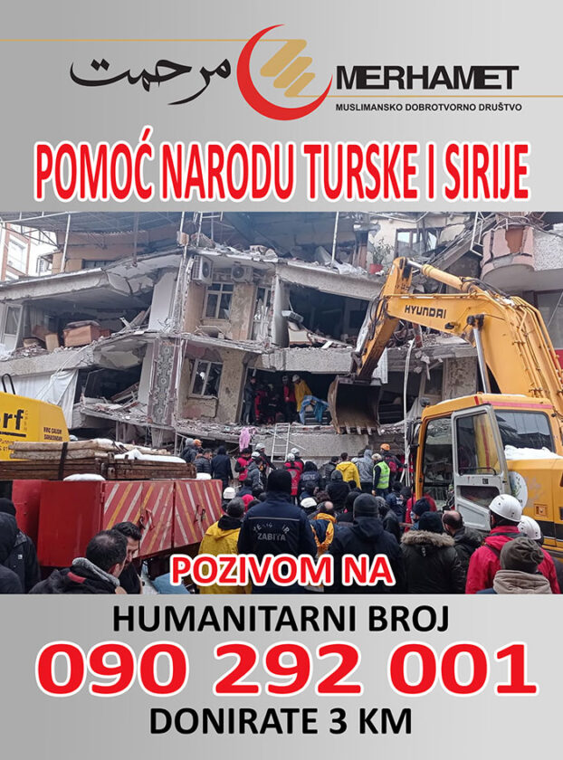 Nakon katastrofalnog zemljotresa koji je jutros pogodio jugoistočnu Tursku, Muslimansko dobrotvorno društvo „Merhamet“ pokrenulo je humanitarnu akciju „Pomoć narodu Turske i Sirije pogođenom razornim zemljotresom“.