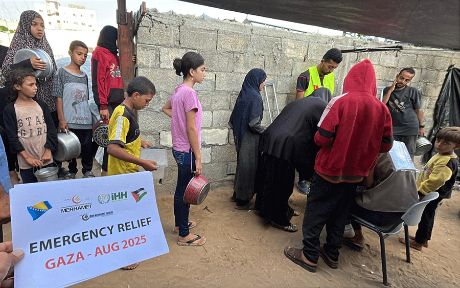 GAZA, 15. avgust - Muslimansko dobrotvorno društvo „Merhamet“ i “Merhamet” Švedske i tokom avgusta svakodnevno pripremaju obroke za ugroženo stanovništvo Gaze. Obroci se pripremaju u saradnji s turskom partnerskom organizacijom IHH koja ima improvizovanu kuhinju na području Gaze.