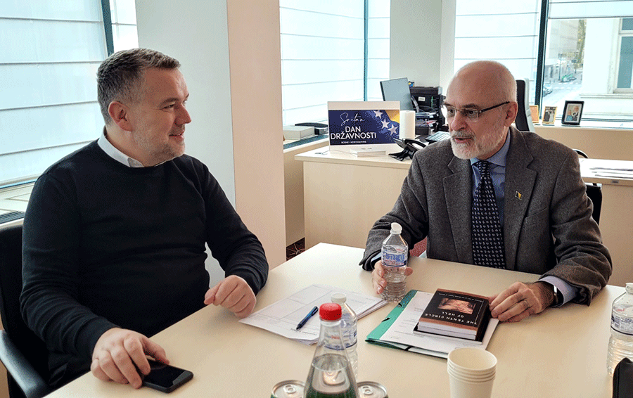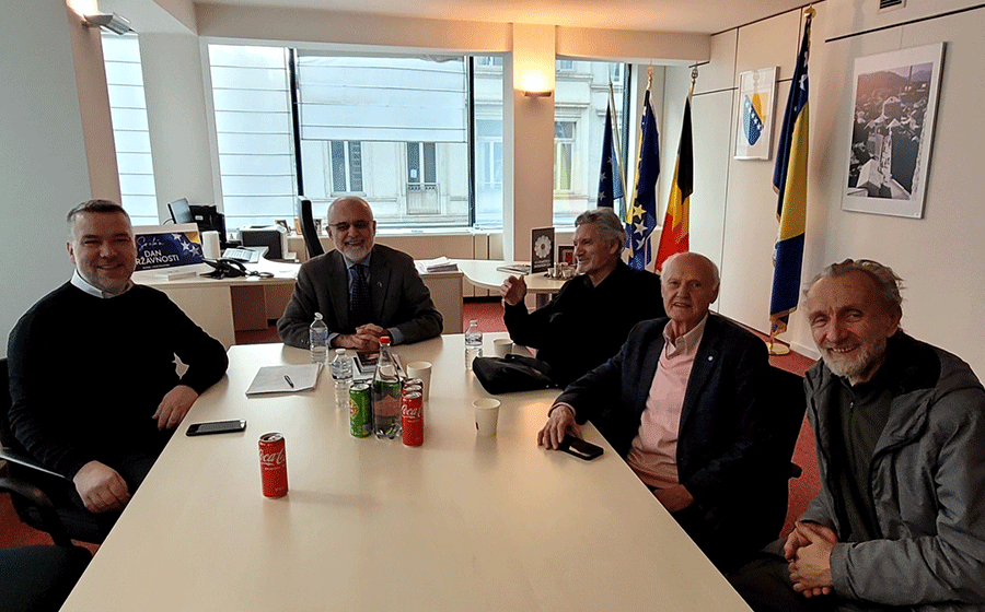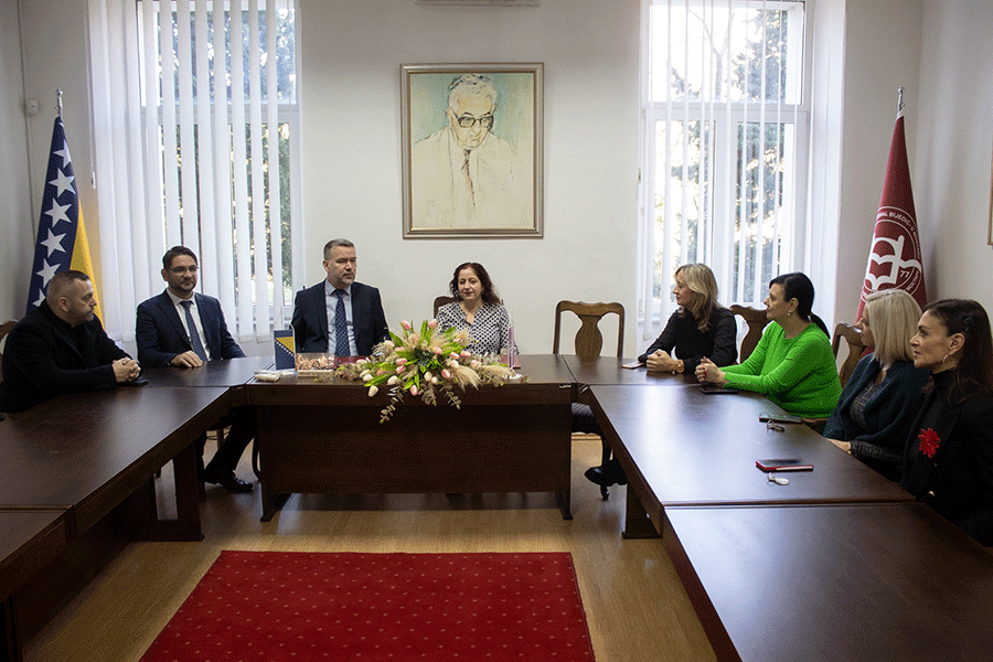 SARAJEVO, 6. januar – Delegacija Islamske zajednice u Bosni i Hercegovini posjetila je sjedište Muslimanskog dobrotvornog društva „Merhamet“ u Sarajevu. Delegaciju, koju su činili direktor Studentskog centra Islamske zajednice u Bosni i Hercegovini Ferid ef. Dautović, njegov saradnika Osman Muratović te direktor Ureda za društvenu brigu Ibrahim ef. Malanović, primio je predsjednik Muslimanskog dobrotvornog društva „Merhamet“ Kenan Vrbanjac.